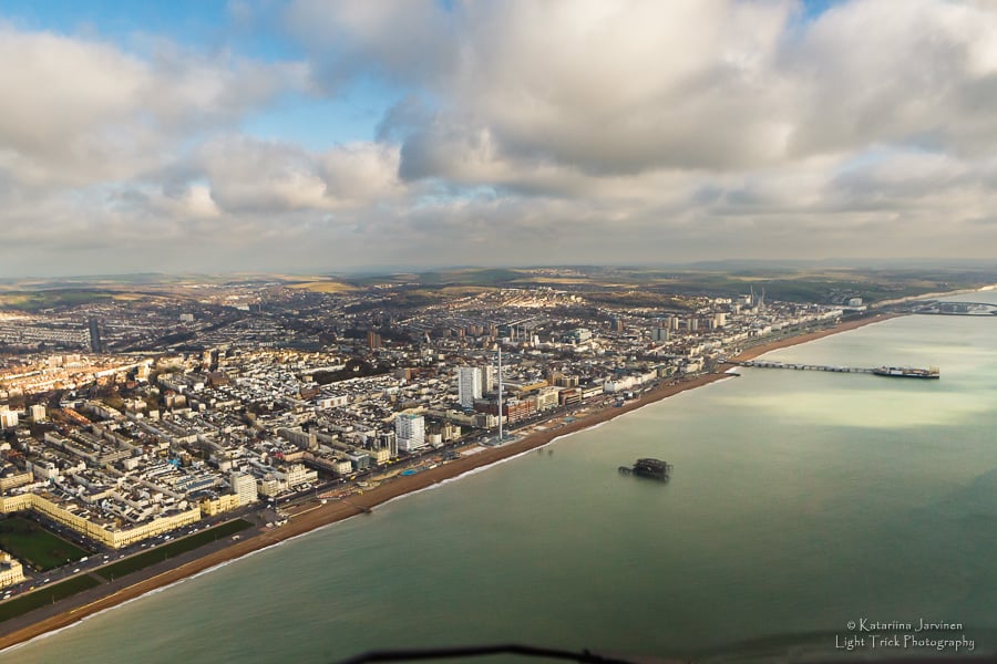 We followed the route of the ‘Brighton Buzz’ tour along the coastline from Shoreham to the lovely town of Brighton and Hove by the sea. That way I could take photos that show what people will see when they take this fun flight.